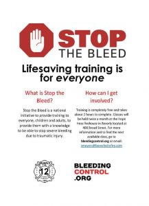 The next STOP THE BLEED training sessions are scheduled for April Saturday, April 6 at 10am and